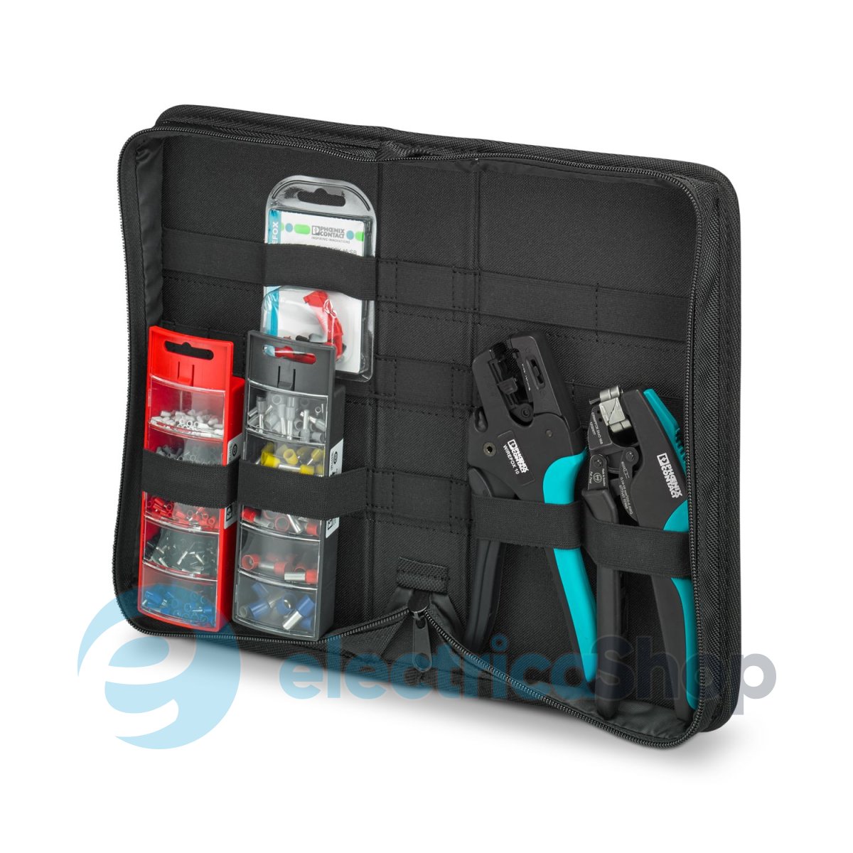 Набір для різання, зачистки та обтиску, упакований у кейсі для інструментів, містить WIREFOX 10, WIREFOX 16/SB, CRIMPFOX DUO 16S, AI SORTI BOX RD, AI SORTI BOX ANT, TOOL-KIT STANDARD EMPTY
