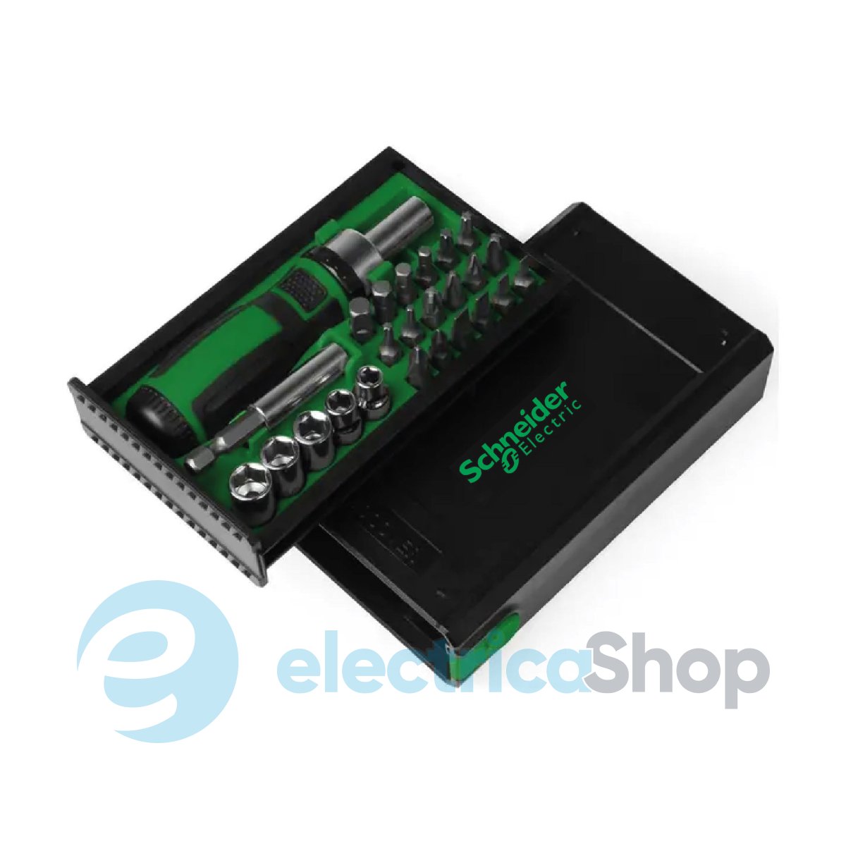 - Магнітний тримач. 17 біт (6,35x25 мм): 3 мм, 4 мм, 5 мм, 6 мм, PH1, PH2, PH3, PZ1, PZ2, PZ3, T10, T15, T20, T25, H4, H5, H6. ADP адаптер. 1/4" головки: 5 мм, 6 мм, 7 мм, 8 мм, 9 мм.