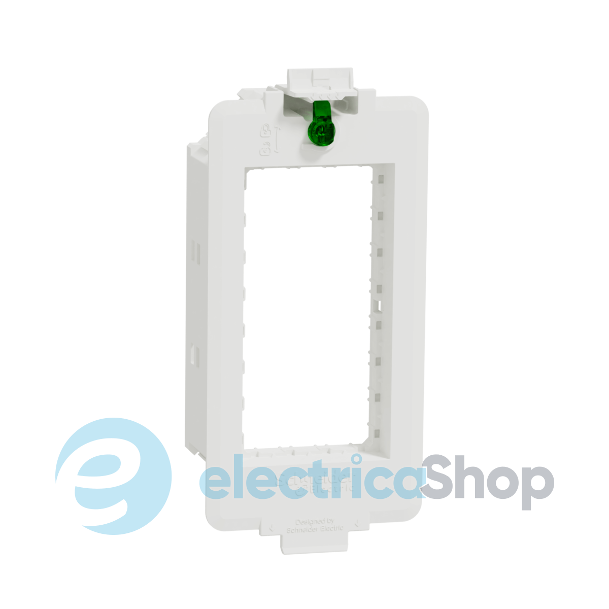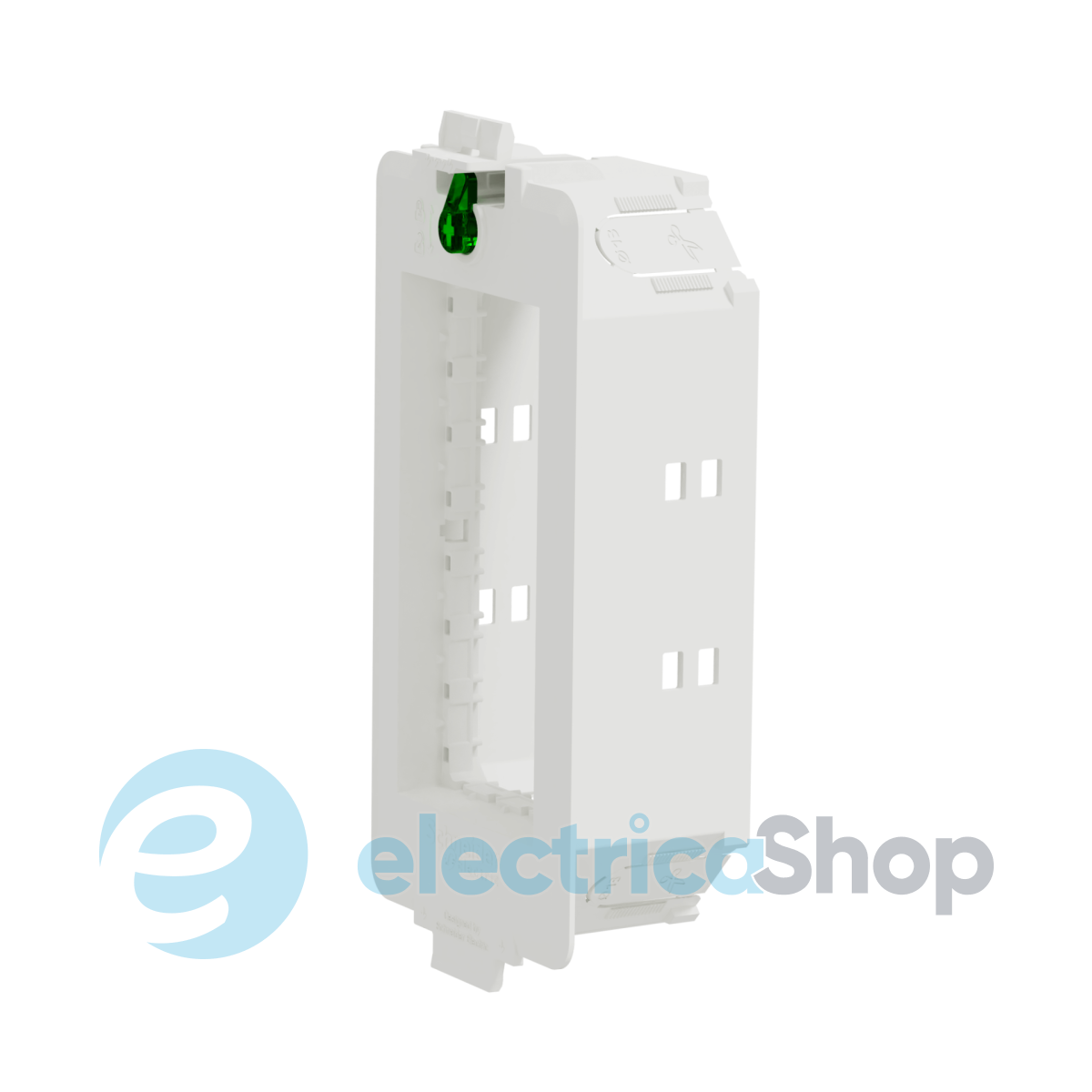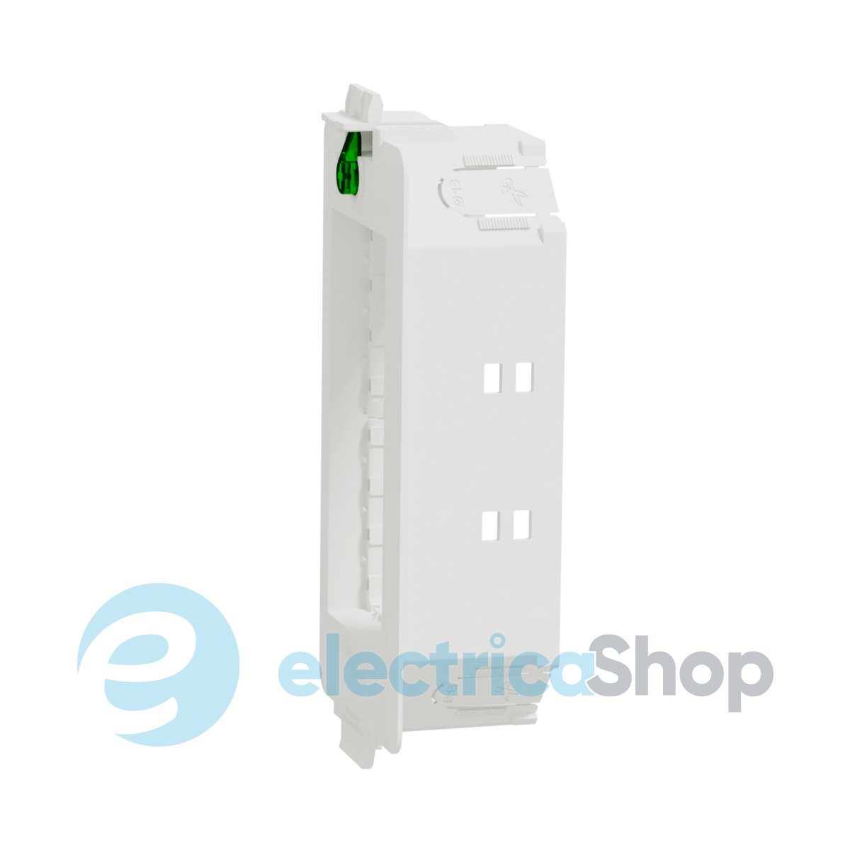 Супорт Schneider Electric Unica System+ INS52150 білого кольору, шириною 2 модулі по 45 мм. Матеріал виробництва супорта - пластик. Супорт на 2 модулі підходить до підлогового лючка розміром M та L. Супорт має вбудований замок для його фіксації в лючку. Розміри: ширина 45 мм, висота 65 мм, довжина 150 мм. Кріпиться за допомогою strain relief. Продаються по 5 шт у комплекті. Unica System+ це серія інноваційних та стильних рішень для організації робочих місць, яка легко встановлюється.