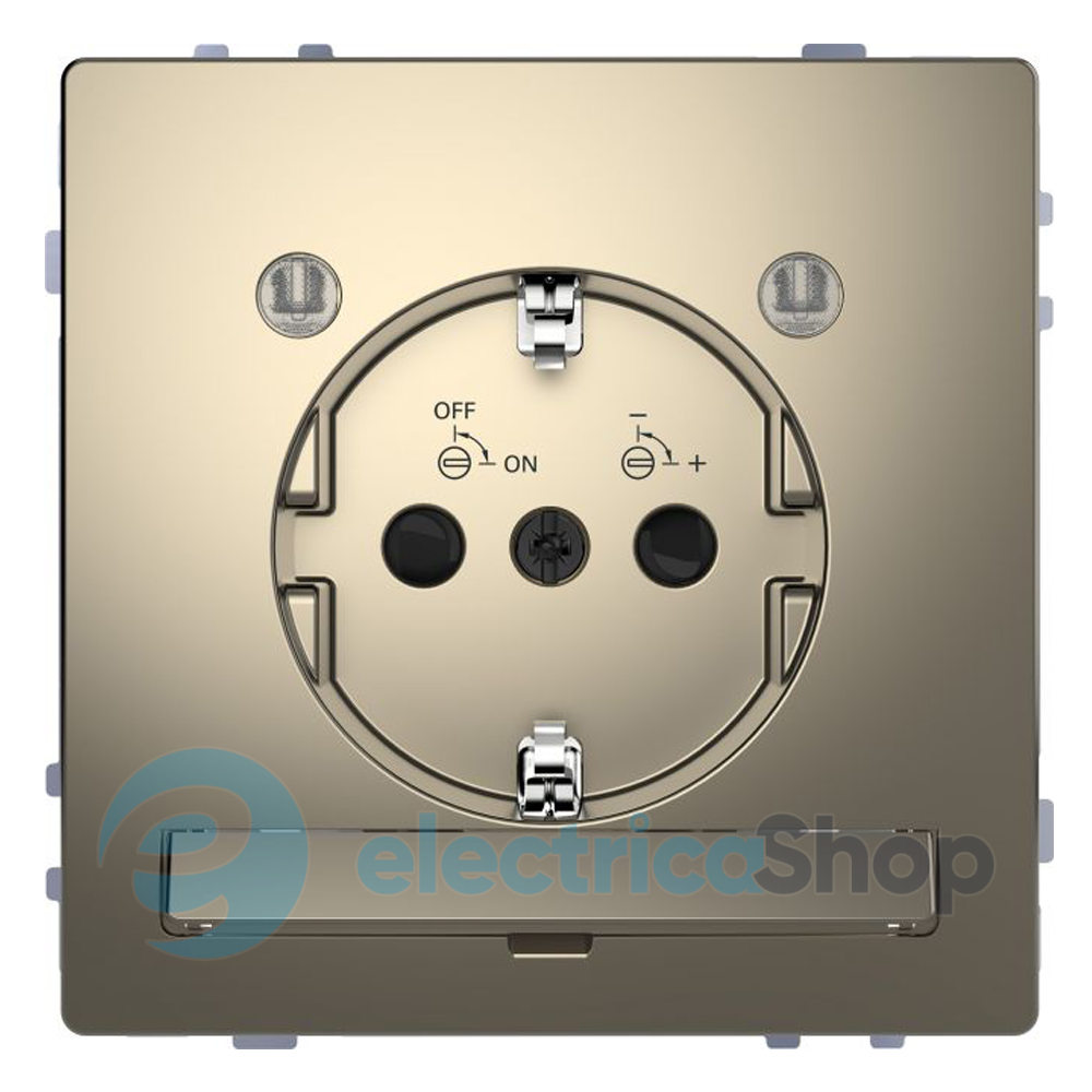 Електрична розетка з підсвічуванням і світлодіодним модулем підсвічування, зі шторками і з безгвинтовими зажимами.