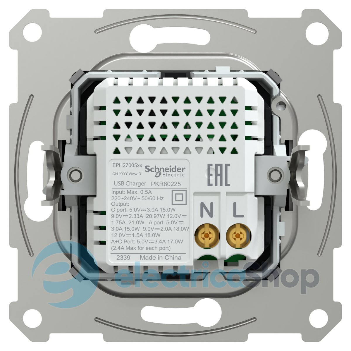 Скористайтеся рішенням для швидкого заряджання від Schneider Electric з зарядним пристроєм Asfora USB-A та USB-C PD PPS потужністю 21 Вт. Цей пристрій призначений для будь-якого внутрішнього середовища та живлення від електромережі. Розетка оснащена передовою технологією заряджання USB-C Power Delivery Programmable Power Supply (PD PPS), що підвищує продуктивність заряджання акумулятора. Вона розумно вибирає найбільшу потужність, яку може витримати пристрій, і підтримує всі новітні технології заряджання акумулятора. Вона також є зворотньо сумісною. USB розетка забезпечує оптимальне швидке заряджання смартфонів і пристроїв, таких як навушники, смартфони, планшети та інші. Вона має захист OVC III, від перегріву, короткого замикання, пускового струму та перевантаження.