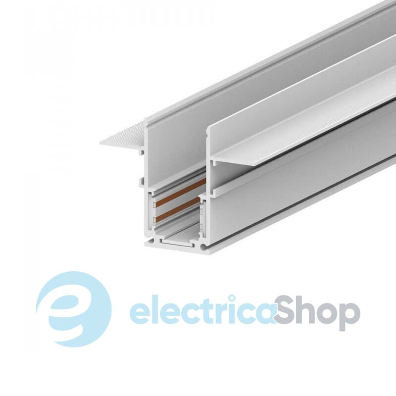Шинопровід магнітний вбудований Feron Ardero CABM1001 2 м білий 80607 призначений для монтажу магнітних систем освітлення. Комплектуючі призначені для з'єднання шин CABM1000 під прямим кутом. Білий колір шинопроводу та конструкцій дає змогу уникнути зайвого кольорового шуму в інтер'єрі, робить комплектуючі непомітними на тлі дизайну світильників. Шинопровід виготовлено з якісного алюмінію.