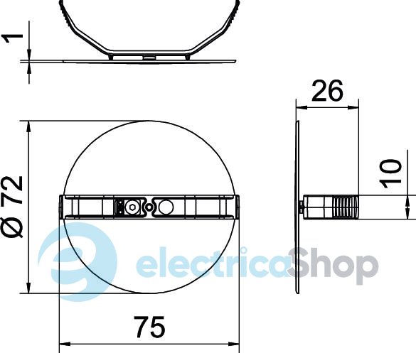Пружинна кришка з центральною еластичною натискною пружиною, для розеток з Ø 60мм, край кришки розміщується врівень, поверхня шершава.