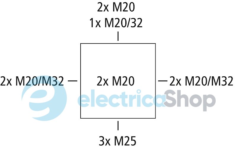 - 4 подвійних мембранних ущільнення IP66 M32, діапазон ущільнення 13 - 21 мм