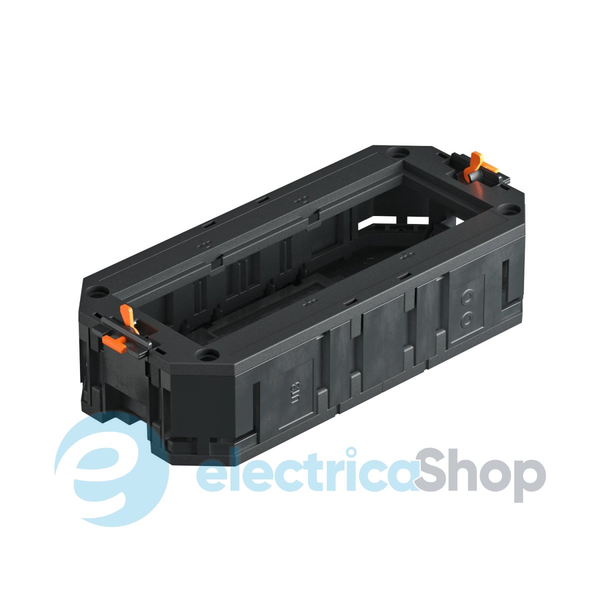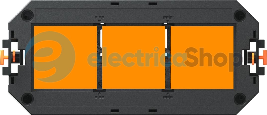 Розетковий супорт з двома фіксаторами кабелів, монтажними перемичками, перегородкою та рамкою UT3 P3 для встановлення 3 пристроїв Modul 45. Монтаж в розеткові люки номінальних розмірів 2, R4, 4 та R7.