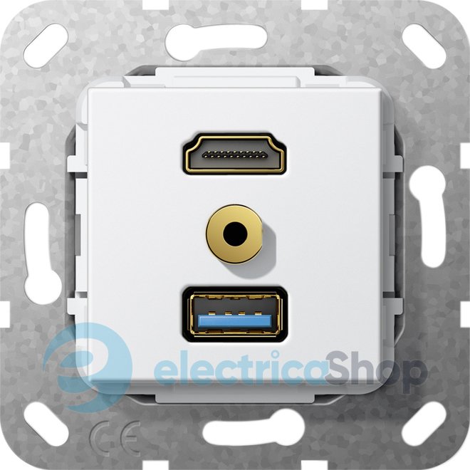 HDMI USB3.0 A Mіні джек 3,5мм перехідник/розгал. кабель System 55 (код Gira: 568003) та центральні вставки (механізми Gira System 55) підходять за розміром до установчих рамок таких серій вимикачів Gira, як Standard 55, E2, E3, Event, Esprit, ClassiX, Studio, а також Gira Profil 55.