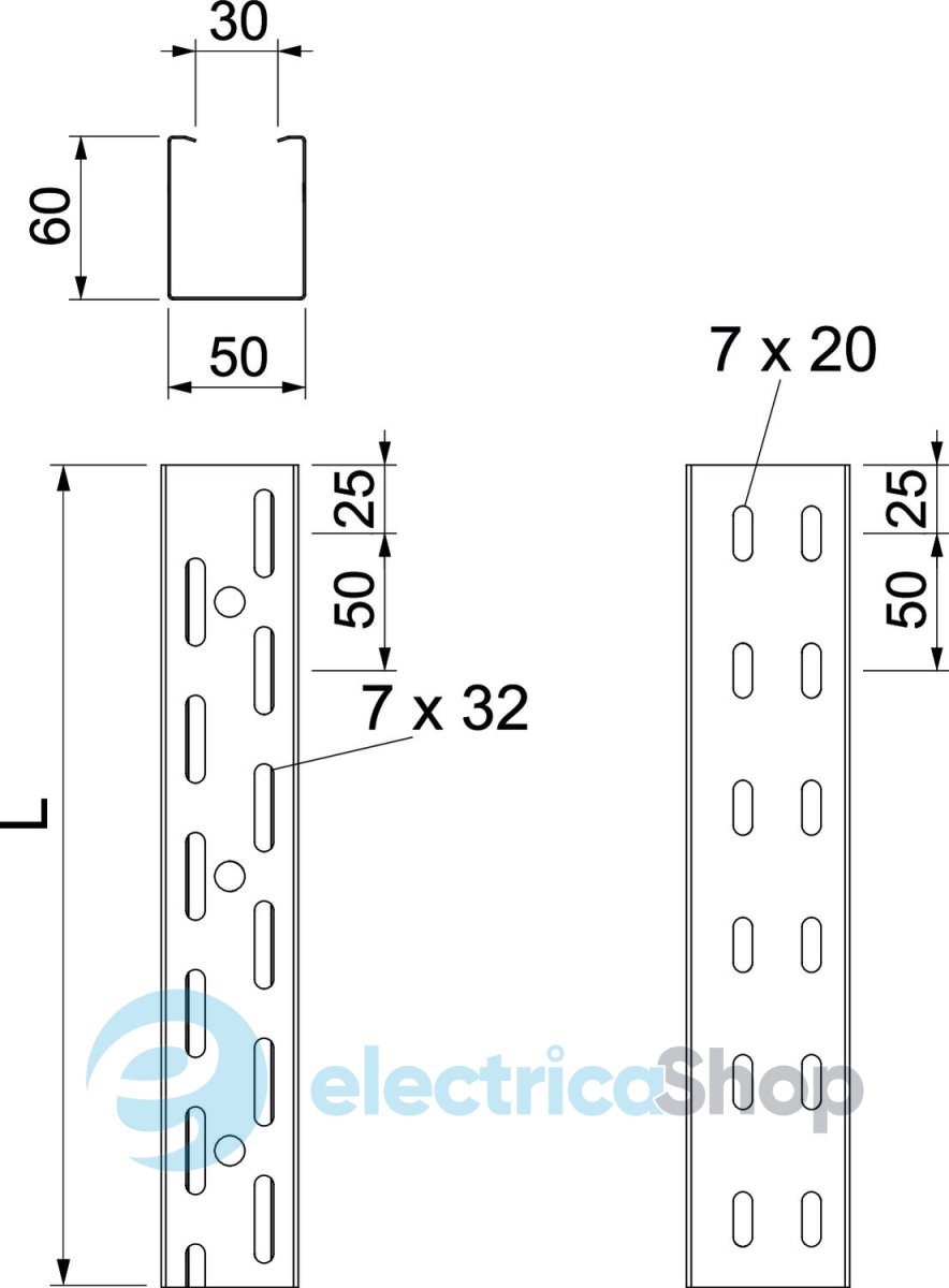 RKS 60 = раціональна система кабельних лотків висотою борта 60 мм. Відповідна кришка з поворотним фіксатором типу AZDMD 50.