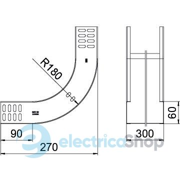 Вертикальний кут 90° у висхідній конструкції для усіх типів кабельної траси із бічною висотою 60 мм.
