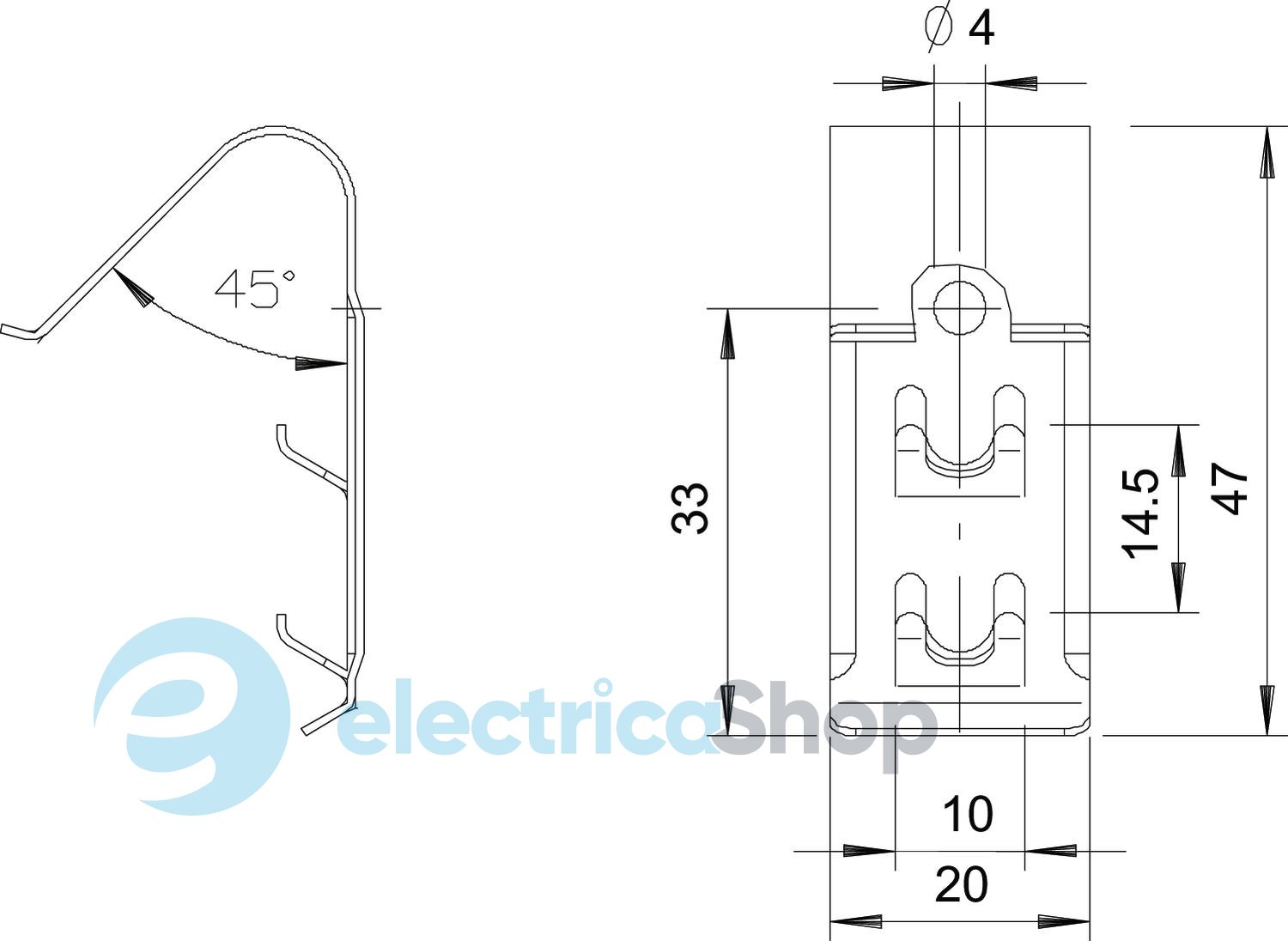 Затискач для кришки для універсального закріплення неперфорованої кришки на кабельному лотку, дротяному лотку та на мініканалах AZ. Скоба для кришки не підходить для використання із дротяними лотками з висотою борту 35 мм.