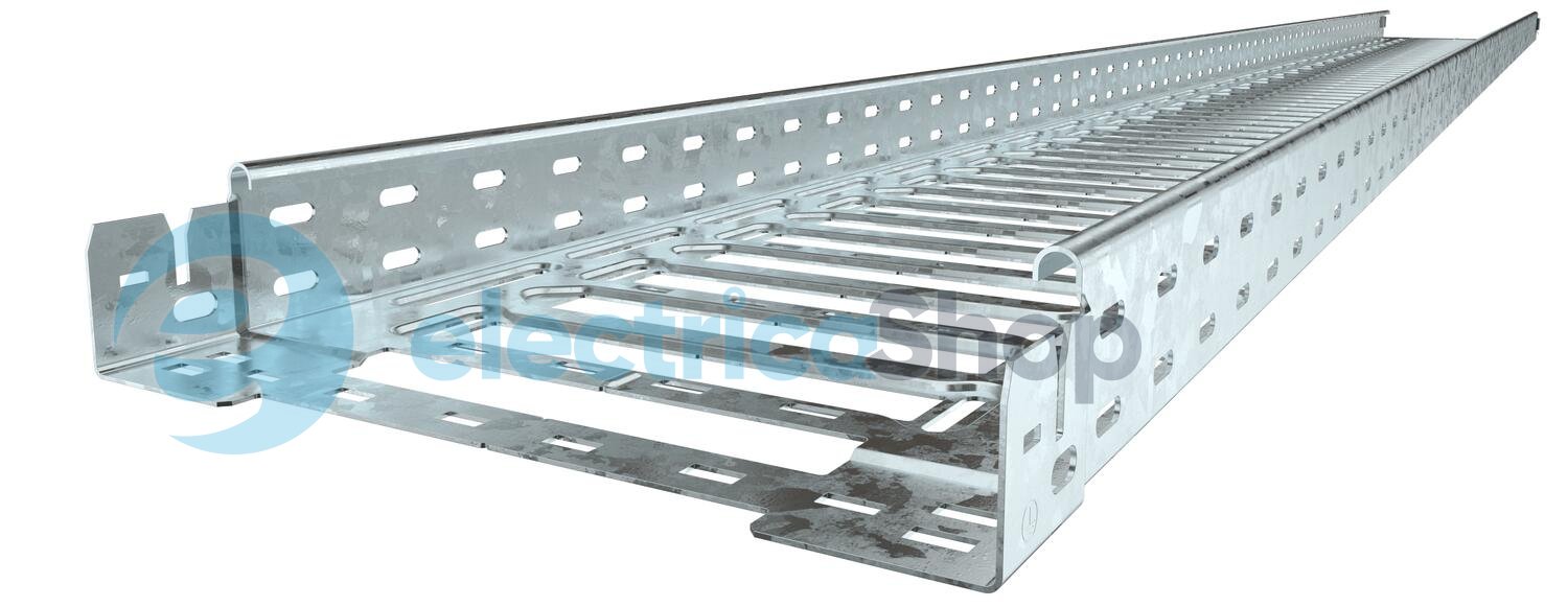 Лоток кабелю з інтегрованою системою швидкого монтажу. Корисна довжина кабельного лотка у зібраному стані становить 3000 мм. Кабельний лоток має суцільну бічну перфорацію 7 х 20 мм для встановлення додаткових сполучних та монтажних елементів. Починаючи з ширини кабельного лотка 200 мм із перфорацією 30%, підходить для використання під спринклерними системами відповідно до директиви VdS 2092.