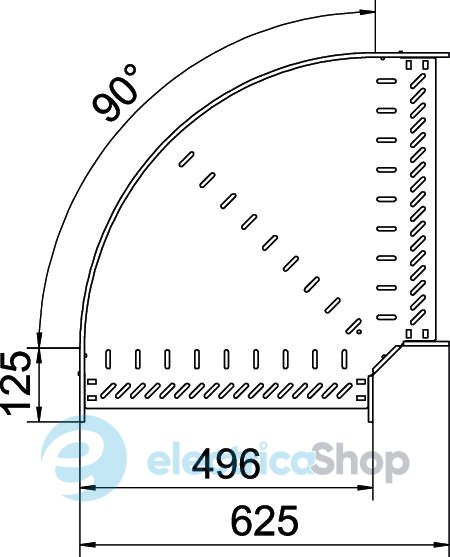 Кутова секція 90° для створення горизонтального відгалуження, фасонна деталь для кабельних лотків, що замикаються і пригвинчуються, висота бічної стінки 60 мм. Безгвинтовий монтаж за допомогою подвійних затискачів або різьбове з'єднання за допомогою гвинтів із низькою напівкруглою головкою FRS і комбінованих гайок M6. Можна використовувати у приміщенні. Кріпильний матеріал замовляється окремо.