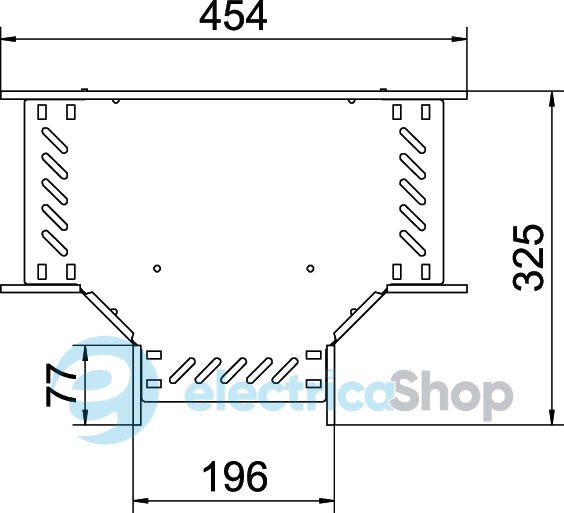Т-подібна секція для створення горизонтального відгалуження, фасонна деталь для кабельних лотків, що замикаються і пригвинчуються, висота бічної стінки 60 мм. Безгвинтовий монтаж за допомогою подвійних затискачів або різьбове з'єднання за допомогою гвинтів із низькою напівкруглою головкою FRS і комбінованих гайок M6. Можна встановлювати як усередині приміщення, так і зовні. Кріпильний матеріал замовляється окремо.