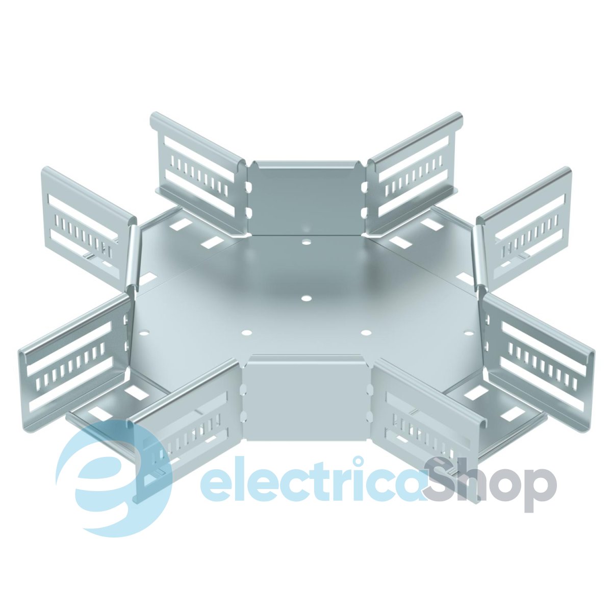 Хрестоподібне відгалуження для створення горизонтального відгалуження, фасонна деталь для кабельних лотків, що замикаються і пригвинчуються, висота бічної стінки 60 мм. Безгвинтовий монтаж за допомогою подвійних затискачів або різьбове з'єднання за допомогою гвинтів із низькою напівкруглою головкою FRS і комбінованих гайок M6. Можна використовувати у приміщенні. Кріпильний матеріал замовляється окремо.