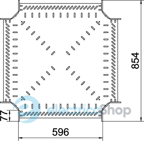 Хрестоподібне відгалуження для створення горизонтального відгалуження, фасонна деталь для кабельних лотків, що замикаються і пригвинчуються, висота бічної стінки 60 мм. Безгвинтовий монтаж за допомогою подвійних затискачів або різьбове з'єднання за допомогою гвинтів із низькою напівкруглою головкою FRS і комбінованих гайок M6. Можна встановлювати як усередині приміщення, так і зовні. Кріпильний матеріал замовляється окремо.