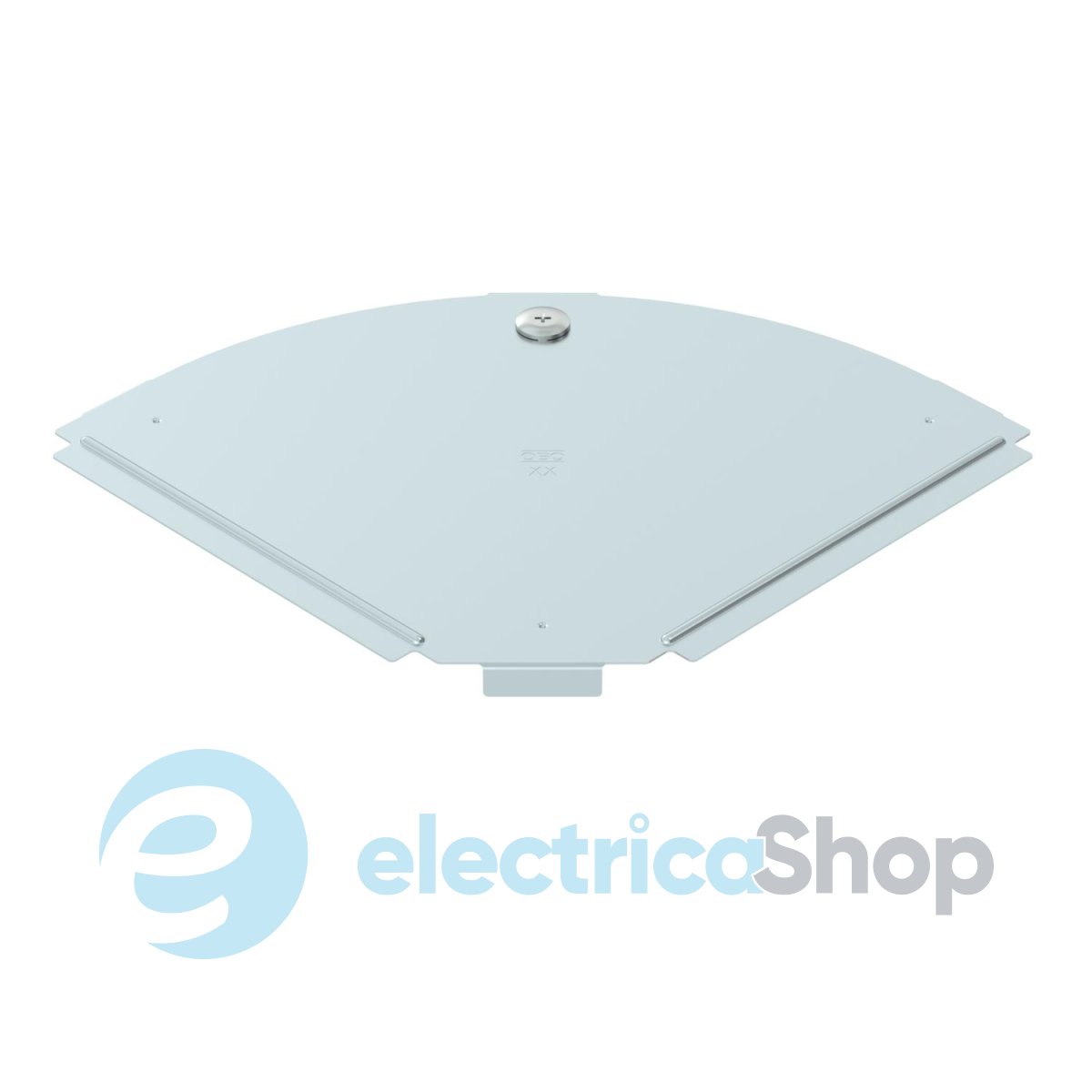 Кришка для фасонної деталі кутової секції 90° для кабельних лотків, що замикаються і пригвинчуються, використовуються всередині приміщень і зовні, для захисту кабелів від пошкоджень і бруду. Кріплення за допомогою попередньо змонтованої засувки та опорного елемента кришки ділянки. Підходить для будь-якої висоти бічної стінки.