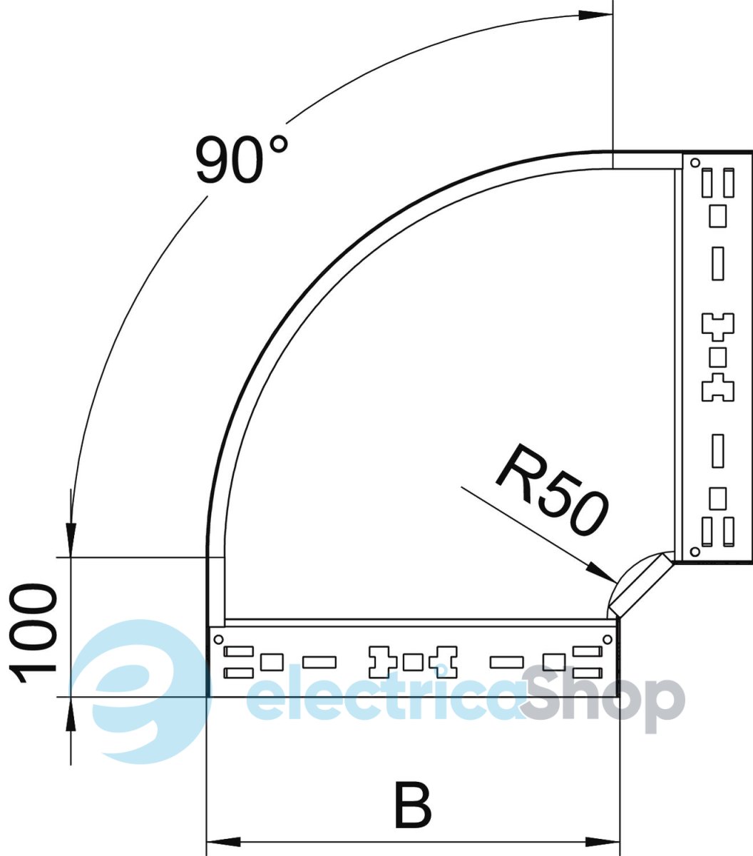 Кутова секція 90° із системою з'єднувачів для швидкого монтажу. Для всіх типів кабельних лотків, висота бокової стінки яких становить 60 мм.