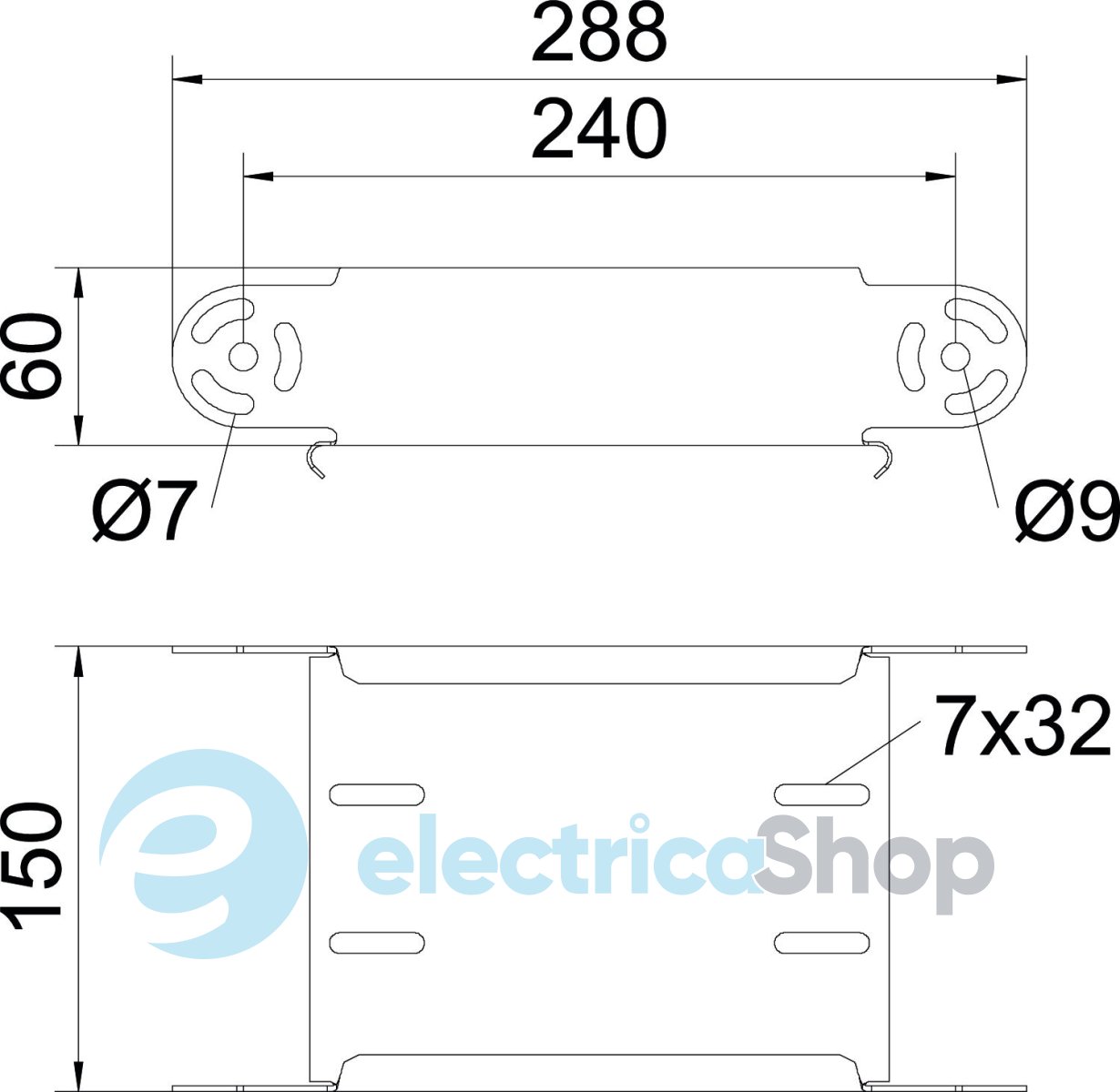 Елемент вертикального регульованого кута для всіх типів кабельних лотків з висотою бічної стінки 60 мм.