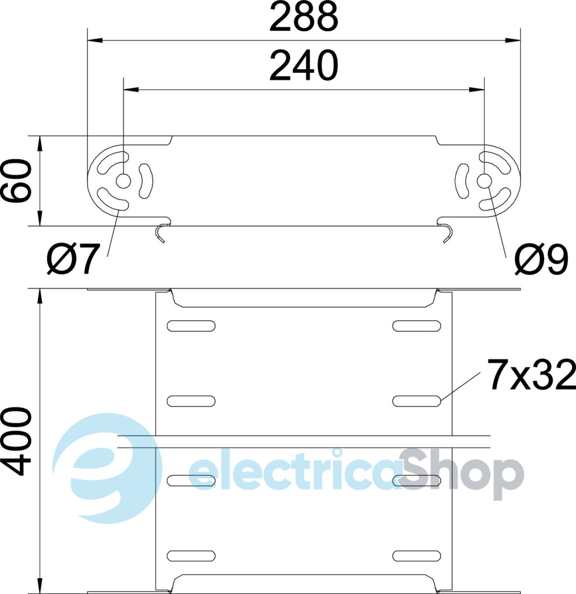 Елемент вертикального регульованого кута для всіх типів кабельних лотків з висотою бічної стінки 60 мм.