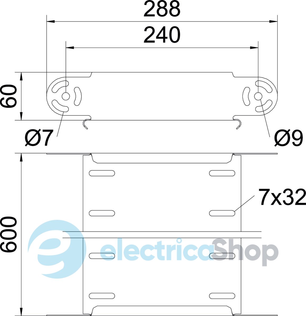 Елемент вертикального регульованого кута для всіх типів кабельних лотків з висотою бічної стінки 60 мм.