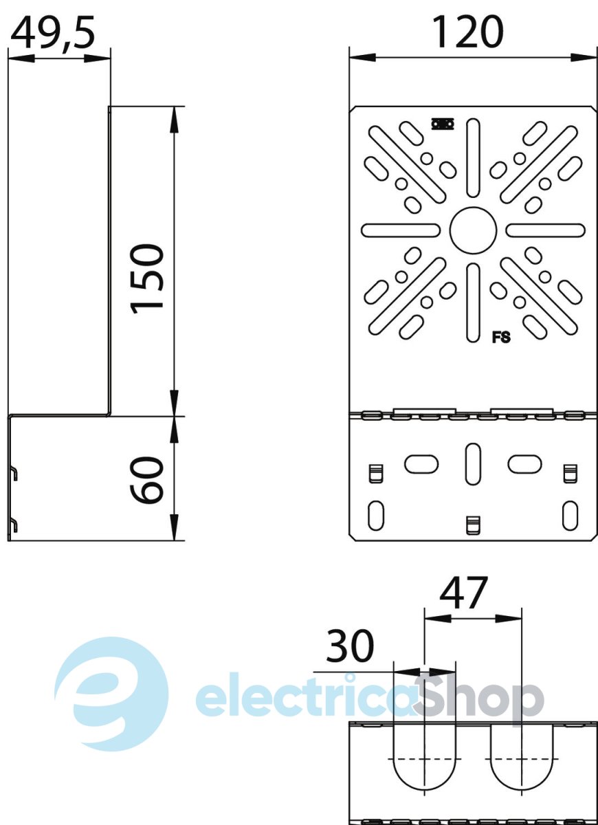 Кутова монтажна пластина для кріплення до бічної стінки кабельного лотка.