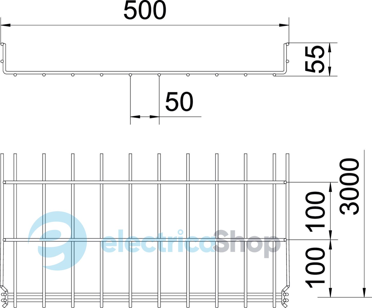 Дротяний лоток зі з'єднувачем відповідної форми зі сторонами вистій 55 мм. Магнітне згасання від впливу екрану: без кришки 15 дБ, кришкою 25 дБ. Точні параметри згідно з класифікацією UL наведені у відповідному допуску.
