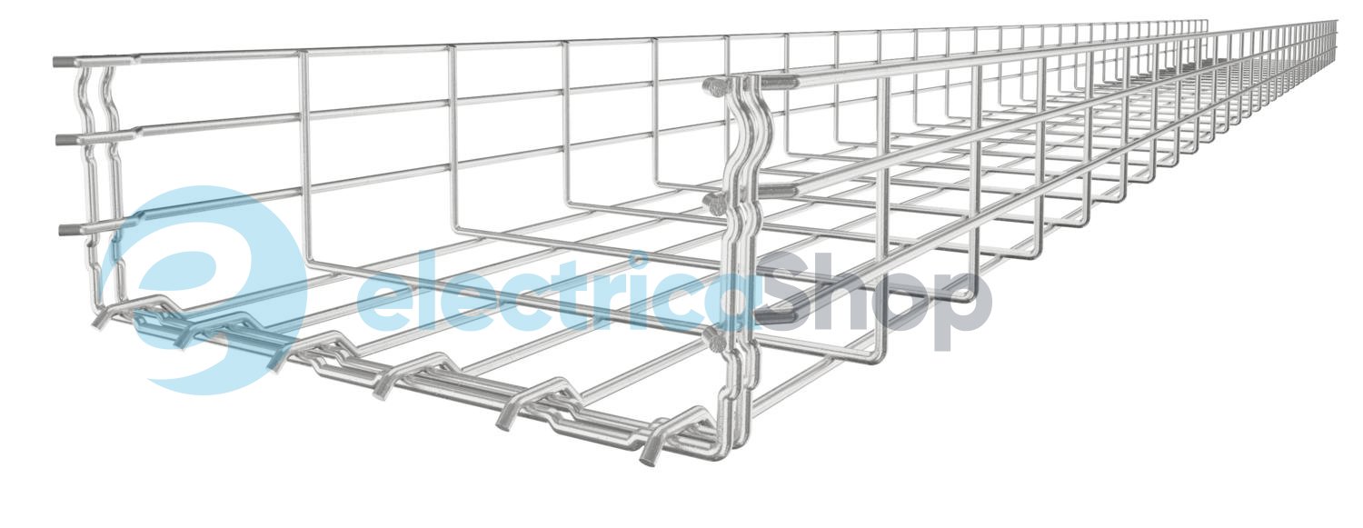 Гратовий лоток із з'єднувачем відповідної форми зі сторонами висотою 105 мм. Магнітне згасання від впливу екрана: без кришки 15 дБ, кришкою 25 дБ.