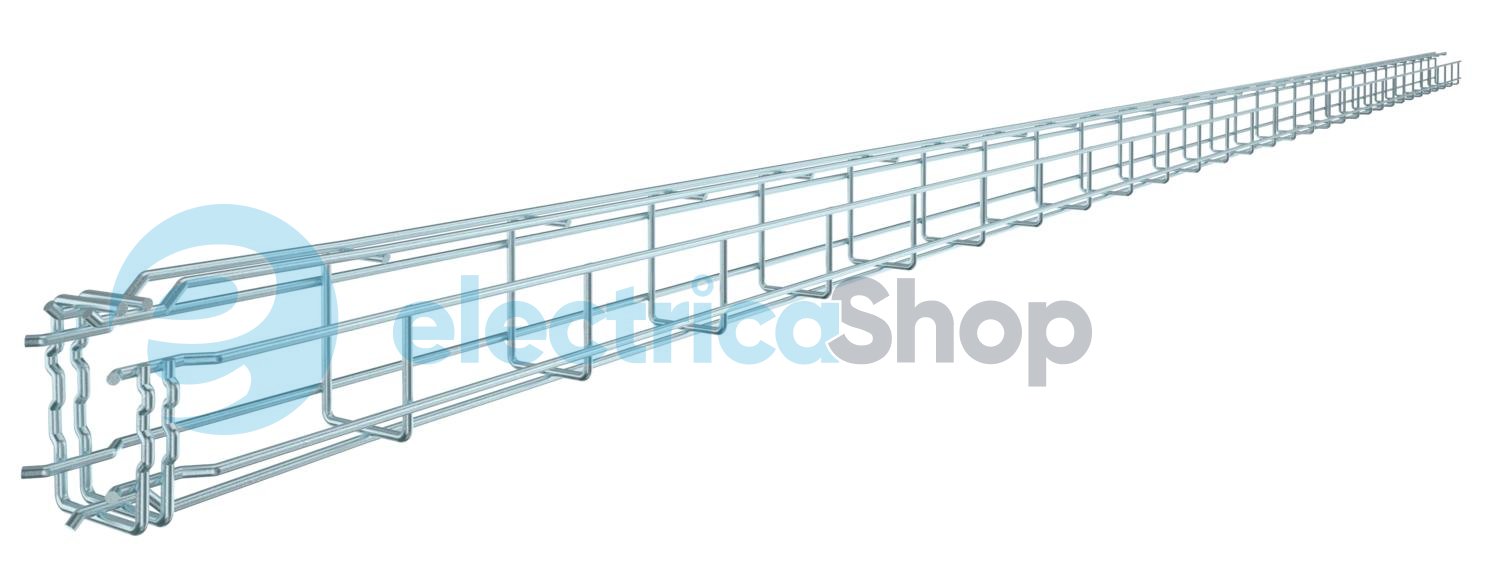 G-подібний дротяний лоток із сталевого дроту, з'єднаного методом точкового зварювання, з різною висотою бічної стінки та шириною. Для прямого настінного та стельового монтажу. Дані навантаження при різних способах монтажу надаються за запитом. Магнітне згасання від впливу екрана 15 дБ.