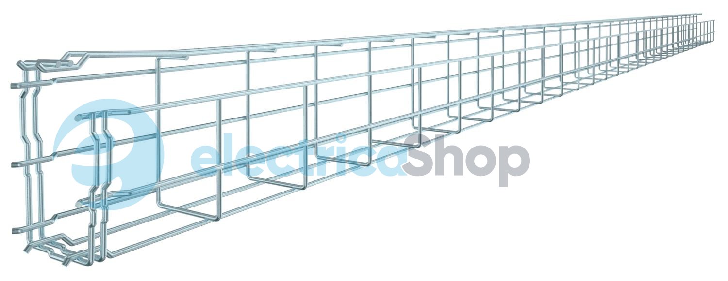 G-подібний дротяний лоток із сталевого дроту, з'єднаного методом точкового зварювання, з різною висотою бічної стінки та шириною. Для прямого настінного та стельового монтажу. Дані навантаження при різних способах монтажу надаються за запитом. Магнітне згасання від впливу екрана 15 дБ.