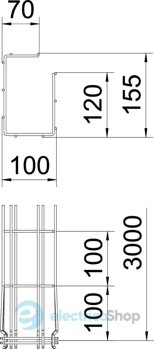 G-подібний дротяний лоток із сталевого дроту, з'єднаного методом точкового зварювання, з різною висотою бічної стінки та шириною. Для прямого настінного та стельового монтажу. Дані навантаження при різних способах монтажу надаються за запитом. Магнітне згасання від впливу екрана 15 дБ.