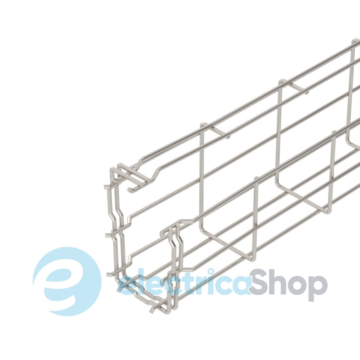 G-подібний дротяний лоток із сталевого дроту, з'єднаного методом точкового зварювання, з різною висотою бічної стінки та шириною. Для прямого настінного та стельового монтажу. Дані навантаження при різних способах монтажу надаються за запитом. Магнітне згасання від впливу екрана 15 дБ.