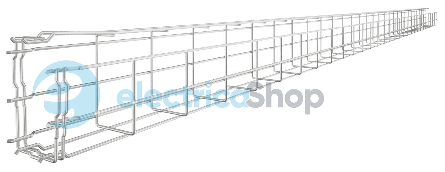 G-подібний дротяний лоток із сталевого дроту, з'єднаного методом точкового зварювання, з різною висотою бічної стінки та шириною. Для прямого настінного та стельового монтажу. Дані навантаження при різних способах монтажу надаються за запитом. Магнітне згасання від впливу екрана 15 дБ.