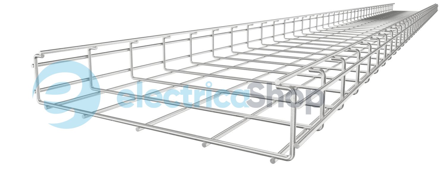Дротяний лоток С-подібної форми із сталевого дроту, з'єднаного точковим зварюванням, з висотою бічної стінки 50 мм. Магнітне згасання від впливу екрана 15 дБ.