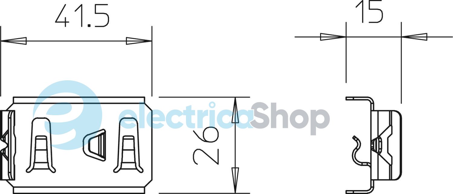 Фіксатор для безболтового кріплення розділових поличок у дротяних лотках.