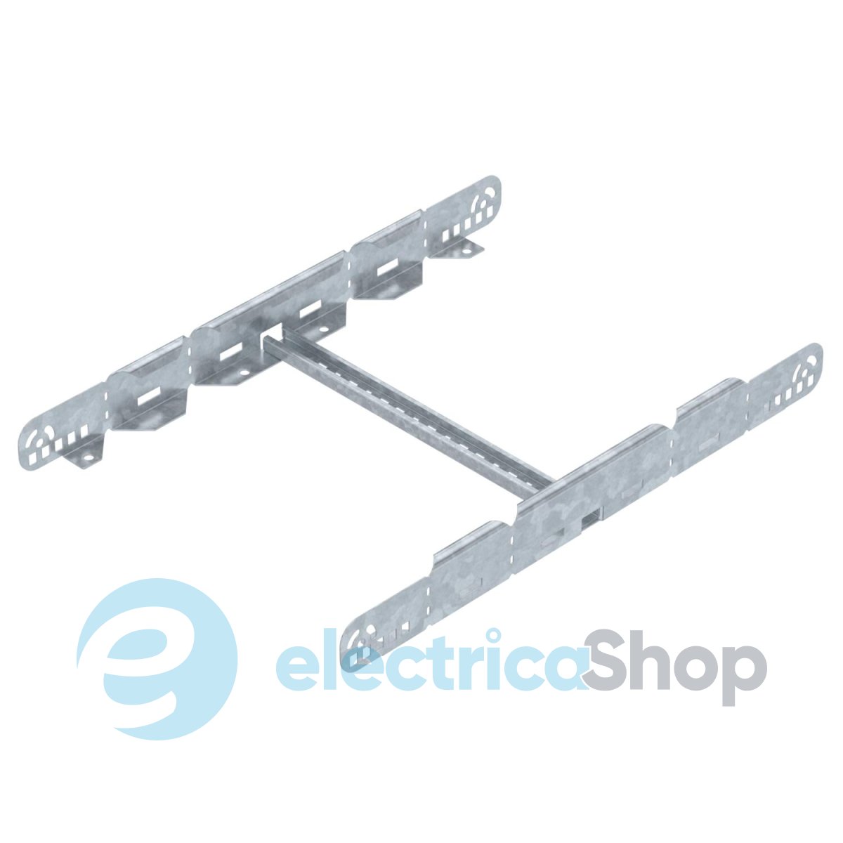 Мультифункціональний з'єднувач для з'єднання сходових лотків з висотою бічної стінки 60 мм. Завдяки з'єднувачу можна створювати симетричні та асиметричні перехідники та кутові секції 0-60°.