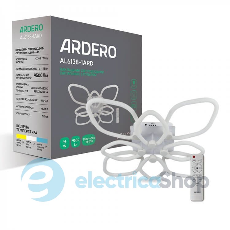 - Функції: Функція димера, На пульті керування, Режим нічника, 3 режими температури