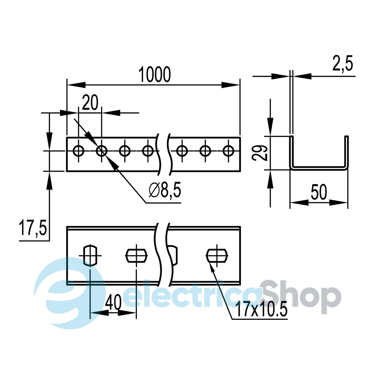 П-подібний профіль BPM-29 застосовується для монтажу консолей BBL-40, BBL-50, BBM-50; кріплення до стіни; підвісу на шпильках; монтажу у кріплення BSV-29/BSF-29. Товщина сталі – 2,5 мм, довжина профілю 1000 мм.