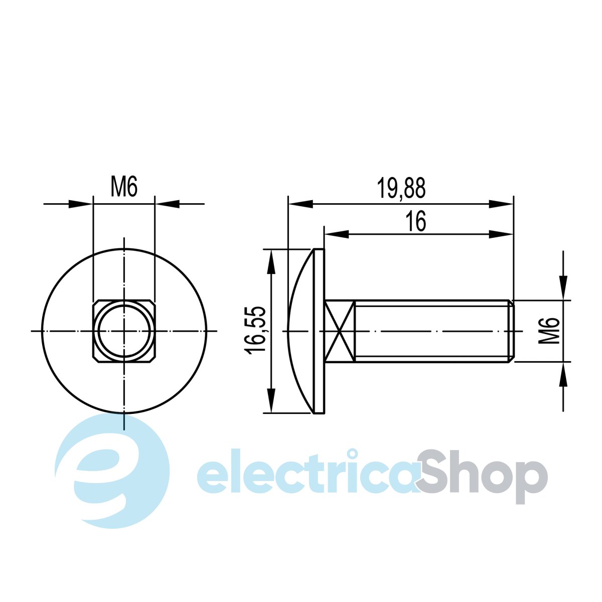 Гвинт із гладкою головкою та вадратним підголовником застосовується для з'єднання між собою монтажних аксесуарів, а також їх кріплення до металевих лотків.