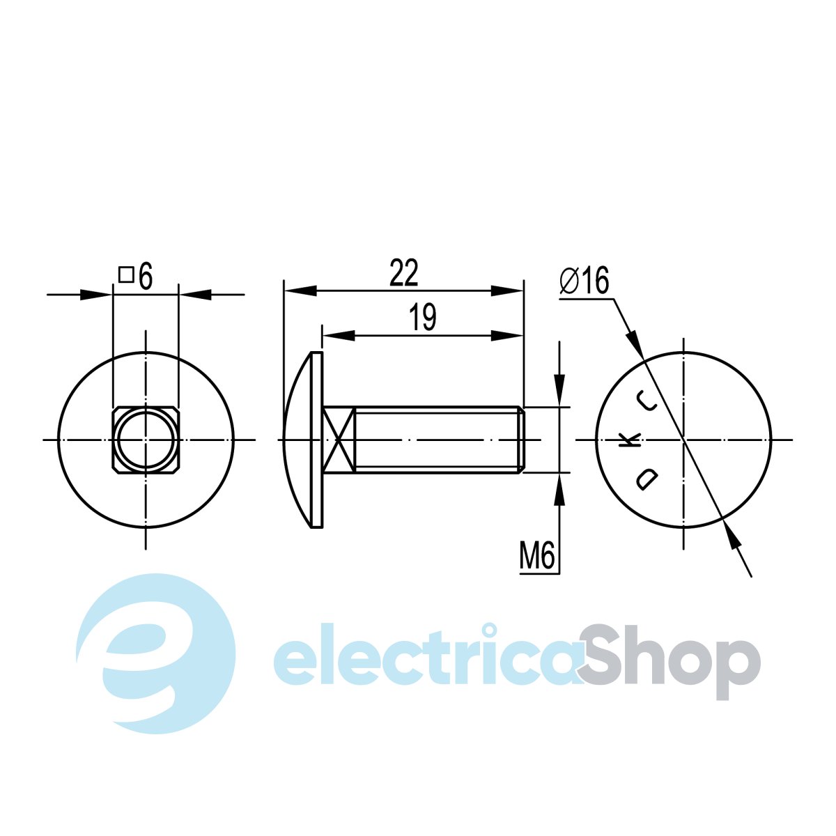 - Метричний розмір різьблення (М..): 6