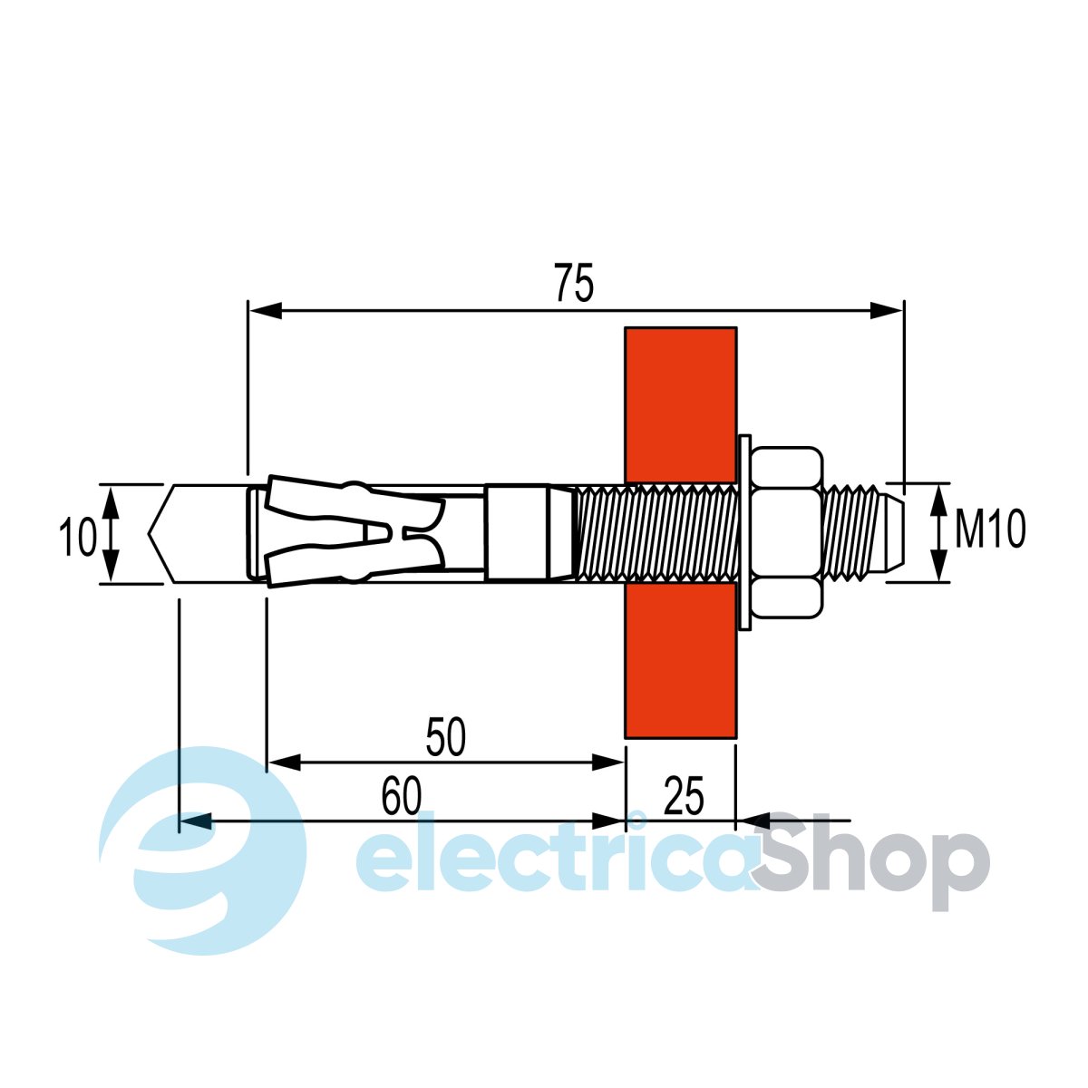Посилений клиновий анкер застосовується для кріплення важких конструкцій до основ з бетону, каменю, повнотілої цегли. Виріб забезпечує високу швидкість монтажу. Гайка та шайба входять до комплекту.