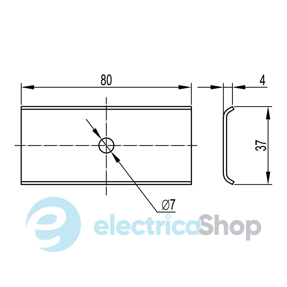 Сполучна пластина з отвором по центру застосовується для з'єднання між собою дротяних лотків з висотою борту 50, 80 або 100 мм. Не використовується разом із дротяними лотками з висотою стінки 30 мм. Товщина сталі – 1,5 мм.