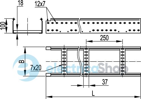 Сходовий лоток призначений для відкритого прокладання кабелю на об'єктах різного призначення. Конструкція сходових лотків забезпечує високу здатність, що несе. Ширина основи лотка – 300 мм, висота бічної стінки – 100 мм, довжина секції – 3000 мм, товщина лонжерону – 1,5 мм. Даний сходовий лоток представлений у виконанні "Сталь, оцинкована методом Сендзіміра".