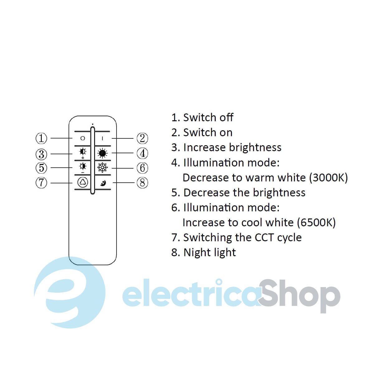 - Функції: Функція димера, На пульті керування, Режим нічника, 3 режими температури