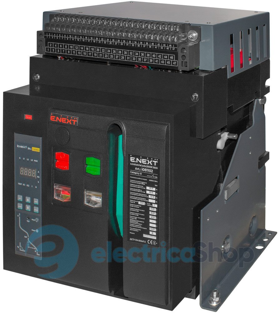 Повітряні автоматичні вимикачі e.industrial.acb Призначені для захисту низьковольтних електричних мереж та обладнання від струмів перев антаження і короткого замикання, у тому числі однофазних замикань на землю, а також для проведення нечастих оперативних комутацій електричних мереж. Діапазон регулювання струму вимкнення при тривалому перевантаженні, Ir1 (похибка ±10 %) - (0,4-1) In+Off.