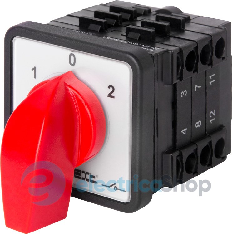 Пакетний перемикач LK16/3.323-ZP/45 щитовий, з передньою панеллю, 3p, 1-0-2, 16А призначені для неавтоматичного включення та відключення ділянок електричних кіл. Застосовуються в розподільчих шафах, шафах керування та ін. Рід приводу: центральна рукоятка. IP44 по фронту, IP20 із боку контактів.
