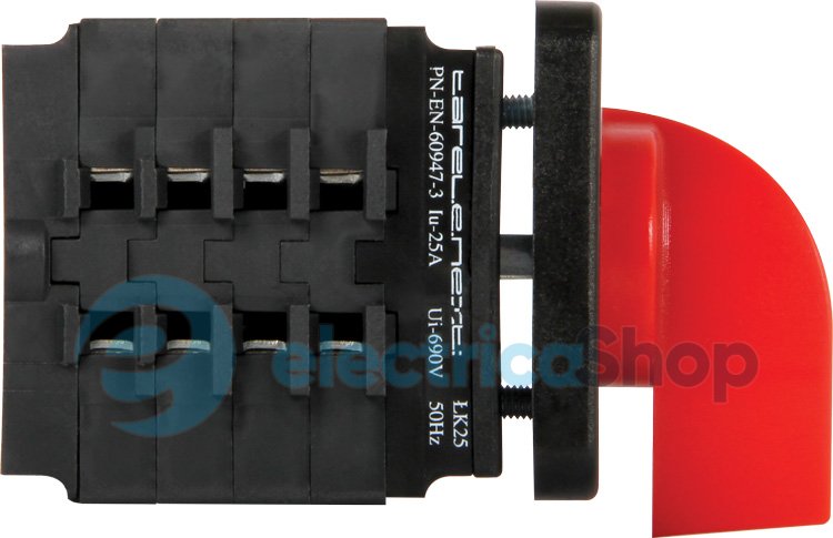 Пакетний перемикач LK25/3.323-ZP/45 щитовий, з передньою панеллю, 3p, 1-0-2, 25А призначені для неавтоматичного включення та відключення ділянок електричних кіл. Застосовуються в розподільчих шафах, шафах керування та ін. Рід приводу: центральна рукоятка. IP44 по фронту, IP20 із боку контактів.