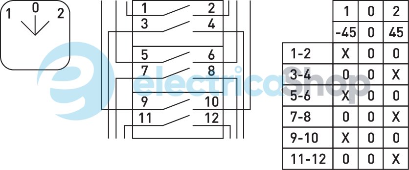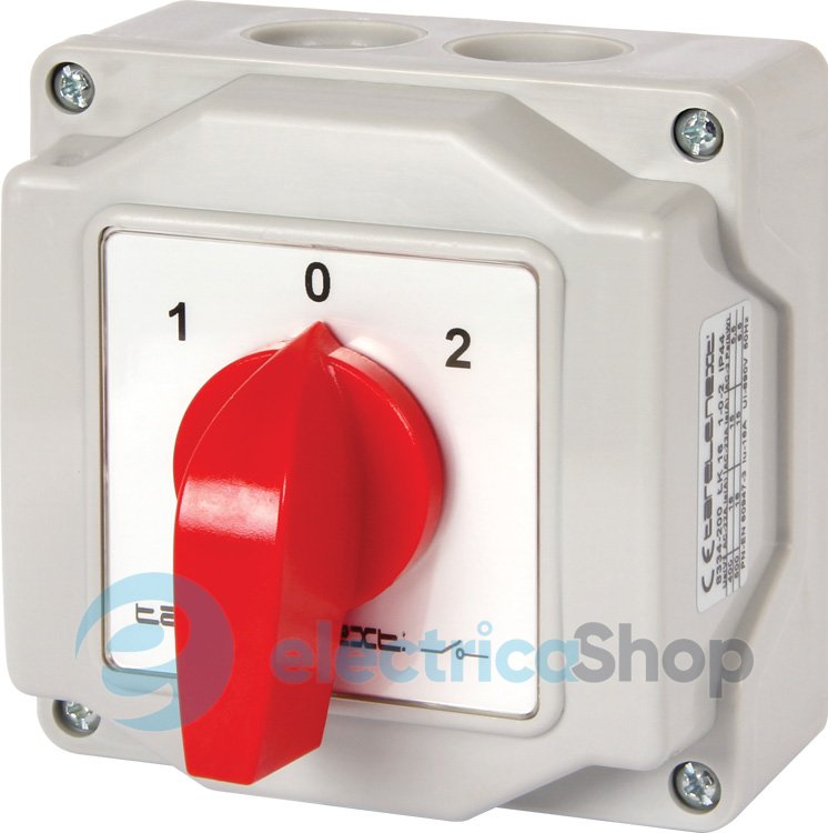 Пакетний перемикач LK16/3.323-ОВ/45 в корпусі, 3p, 1-0-2, 16А, IP44 змонтовані у корпусах, що забезпечують ступінь захисту IP44. Призначені для неавтоматичного увімкнення та відключення ділянок електричних кіл. Застосовуються в розподільчих шафах, шафах керування та ін. Рід приводу: центральна рукоятка.