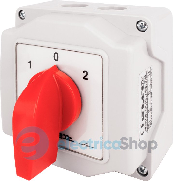 Пакетний перемикач LK25/3.323-ОВ/45 в корпусі, 3p, 1-0-2, 25А, IP44 змонтовані у корпусах, що забезпечують ступінь захисту IP44. Призначені для неавтоматичного увімкнення та відключення ділянок електричних кіл. Застосовуються в розподільчих шафах, шафах керування та ін. Рід приводу: центральна рукоятка.