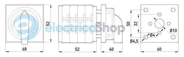 Пакетний перемикач LK25/4.322-ZК/45 щитовий, з передньою панеллю (під пломбування), 0-1-2, 25А призначений різного ступеня електричних кіл. IP44 по фронту, IP20 із боку контактів.