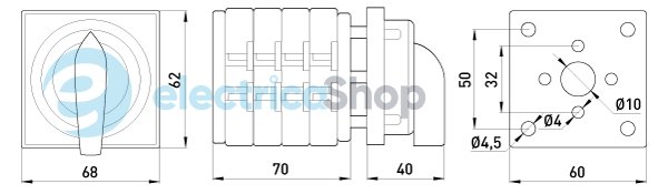 Пакетний перемикач LK40/4.322-ZК/45 щитовий, з передньою панеллю (під пломбування), 0-1-2, 40А призначені для неавтоматичного включення та відключення ділянок електричних кіл. Застосовуються в розподільчих шафах, шафах керування та ін. Рід приводу: центральна рукоятка. IP44 по фронту, IP20 із боку контактів.