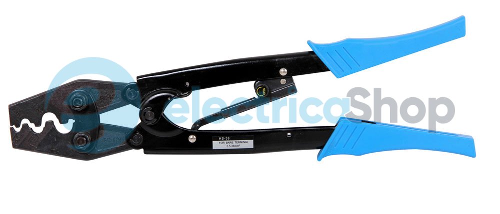 Інструмент e.tool.crimp.hs.38.6.35 для обтиску неізольованих наконечників 5.5-35 кв.мм призначений для обтискання мідних та алюмінієвих неізольованих кабельних наконечників. Форма опресування: точкова або гексагональна. Інструмент має механізм регулюючого розблокування, що унеможливлює недоопресування.